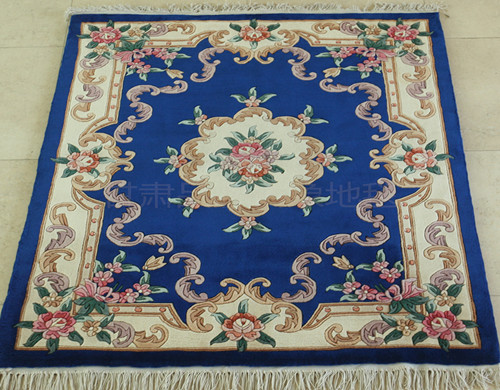 手工工藝地毯采用優(yōu)質(zhì)的純羊毛,再經(jīng)過(guò)選毛、洗毛、梳毛、染色、織毯、剪片、水洗等工
